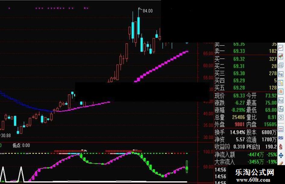 STICKLINE(PP103<PP101 AND ISLASTBAR,30,70,1,1),COLORGREEN;{甭看了,快找高人指点或者骂街,好像要大跌,绿色};