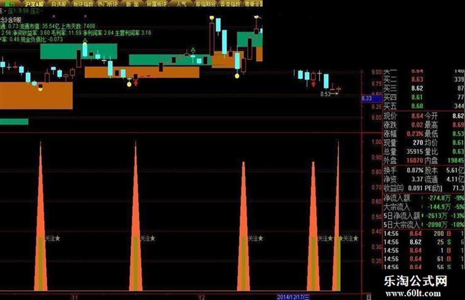 DRAWTEXT(B2,0.35,'★关注★'),COLOR109090;