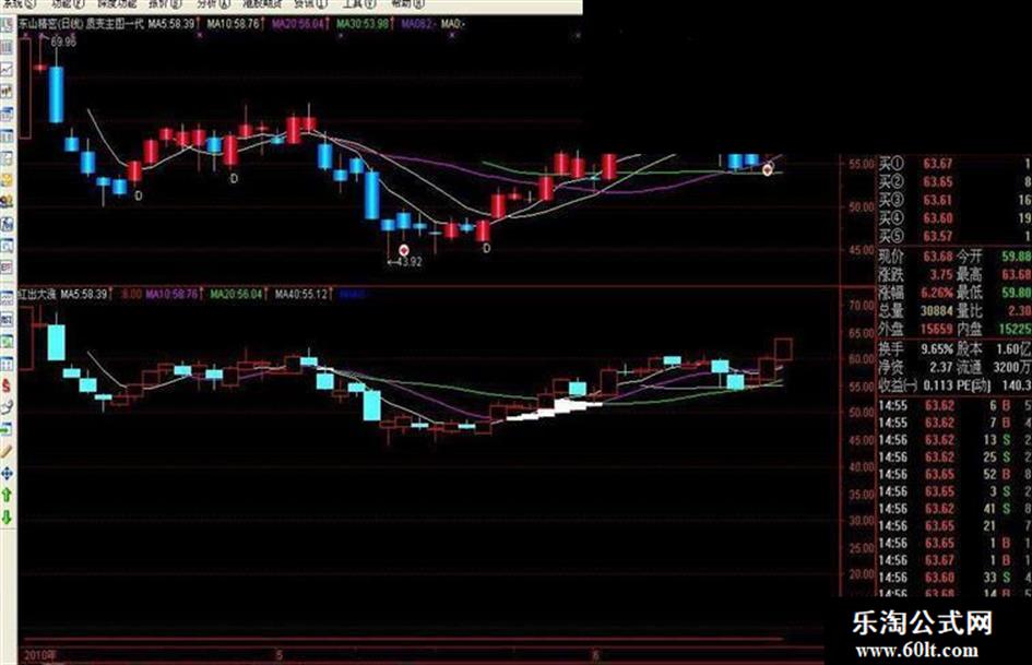STICKLINE(MA5>=MA10 AND MA5<MA20,MA10,MA5,4,0),COLORWHITE;