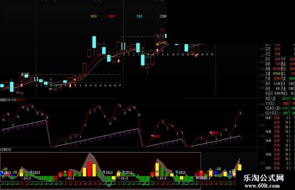 DRAWTEXT(CROSS(BB,10) AND C/REF(C,1)>1.05,BB*0.93,'探囊取物'),COLORRED;