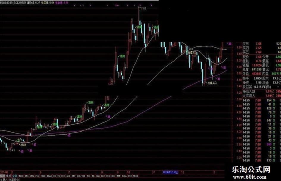 支撑买入:=IF(C<强势线 AND C>生命线,MH,0);