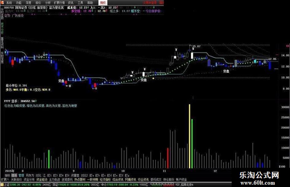 DRAWTEXT_FIX(ISLASTBAR,0,0,0,'红色柱为吸货量,绿色为出货量,黄色为天量,蓝色为地量'),COLOR9F9F5F;