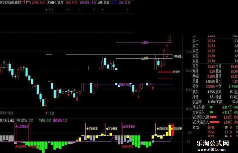 DRAWTEXT(CURRBARSCOUNT=INTPART((WH2+21)*0.618),进场,'进场线'),COLORRED;