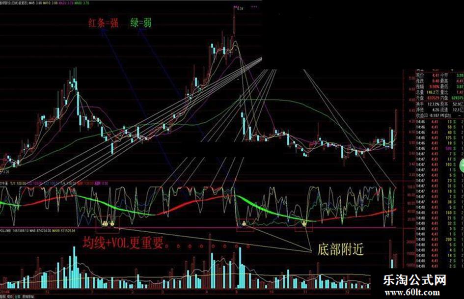 强势:IF(TJ3>86 AND TJ4>76,TJ4,DRAWNULL),COLORRED,LINETHICK2;