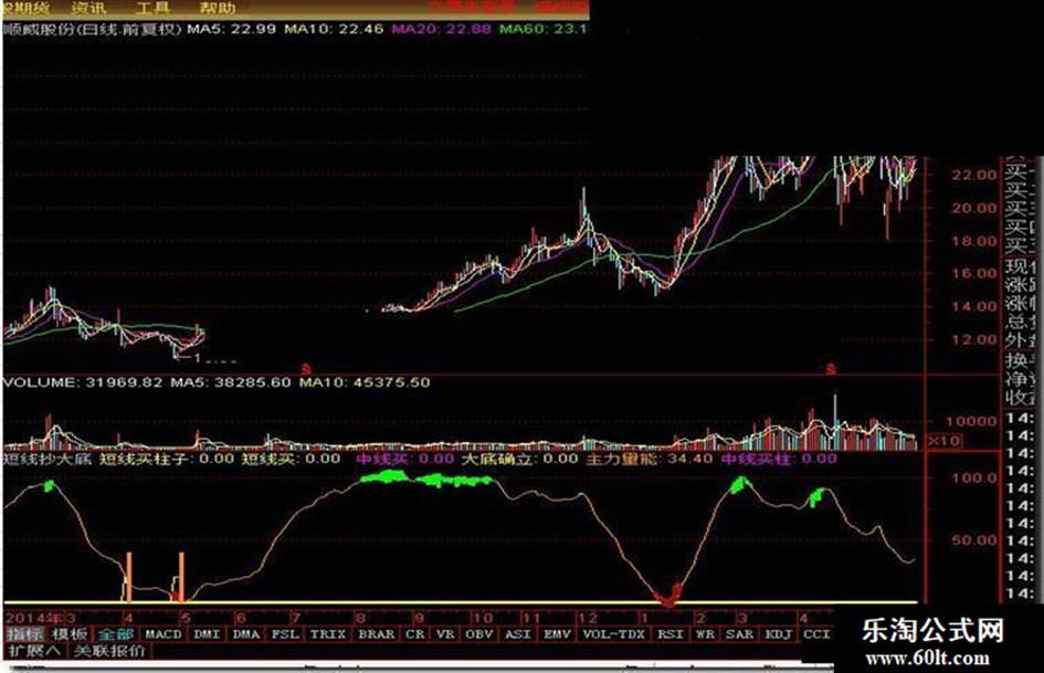 短线买1:=IF(绝佳买点>500 AND 绝佳买点>2500,1,0),COLORYELLOW,LINETHICK1;