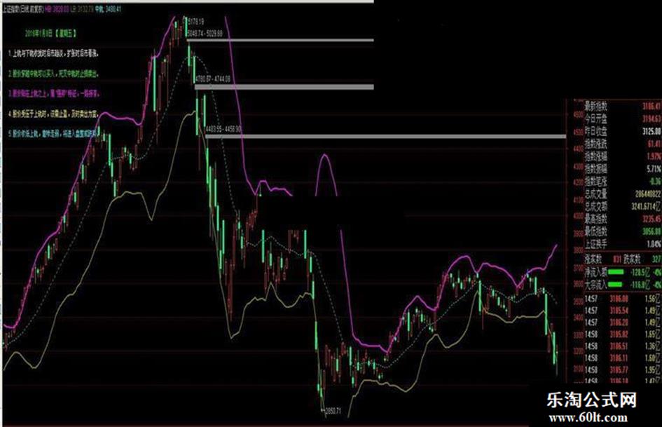 DRAWTEXT_FIX(1,0.01,0.23,0,'4. 股价受压于上轨时,该需止盈,及时卖出为宜。')COLORYELLOW;