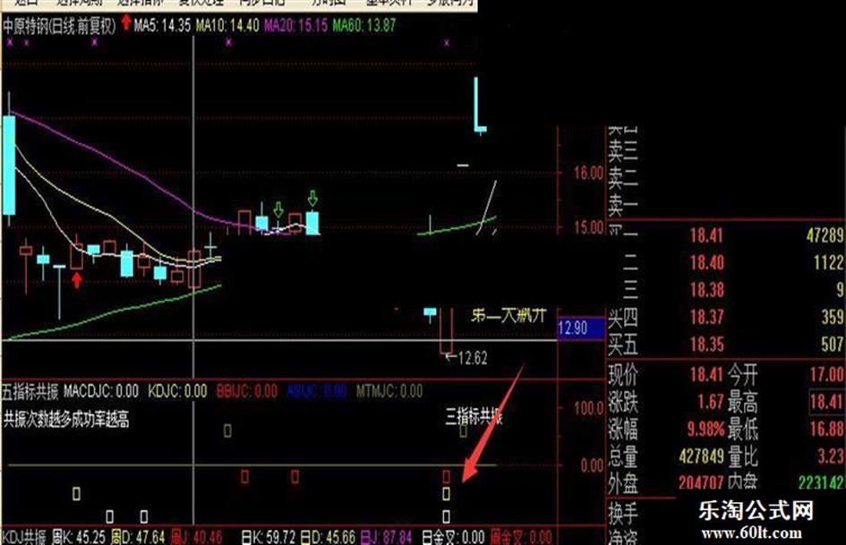 五指标共振,自用选股,副图,无未来,成功率高,通常来说,多个指标同时出现买入信号时成功率比较高,本指标是5个指标融合在一起的,如果3个,4个,5个指标同时发出买入信号时,就会提示预警,指标副图里会有文字,例如三指标共振,四指标共振,五指标共振。出此信号时可以进场操作,在牛市时很容易抓住主升浪,在熊市里很容易找到强于大盘的个股。