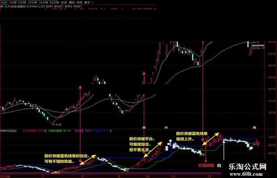好象关于股价突破平台操作的指标不多,现分享一个之前收藏的突破平台加仓指标,无未来函数,准确率极高。