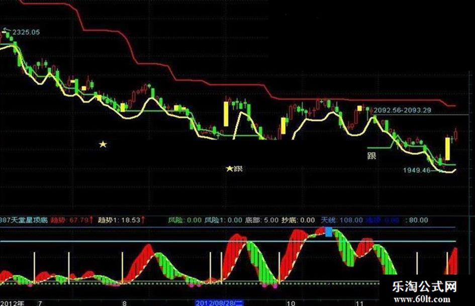 DRAWTEXT(CROSS(买线,卖线)AND 箱顶>=REF(箱顶,1),LOW*0.95,'★跟'),COLOR00FFFF;