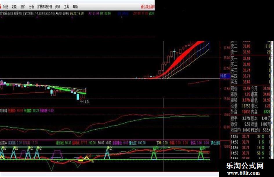 快买:( IF(((动向趋势线 > 88) AND (神偷线 < 5.8)),68,0)),LINETHICK1,COLORFF00FF;