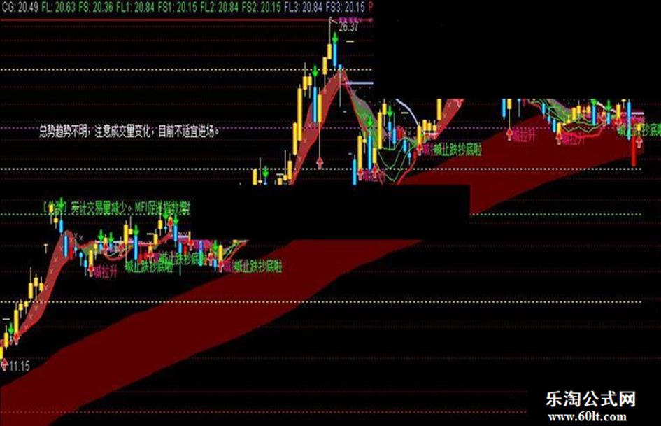 DRAWTEXT_FIX(MMM3,0.06,TS27,0,'[伪装]实计交易量减少。MFI促进指数增加。'),COLORGREEN;