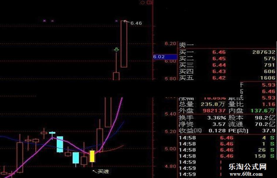 DRAWTEXT(FILTER(买=1,5),LOW-0.05,'↖买进'),COLORYELLOW;