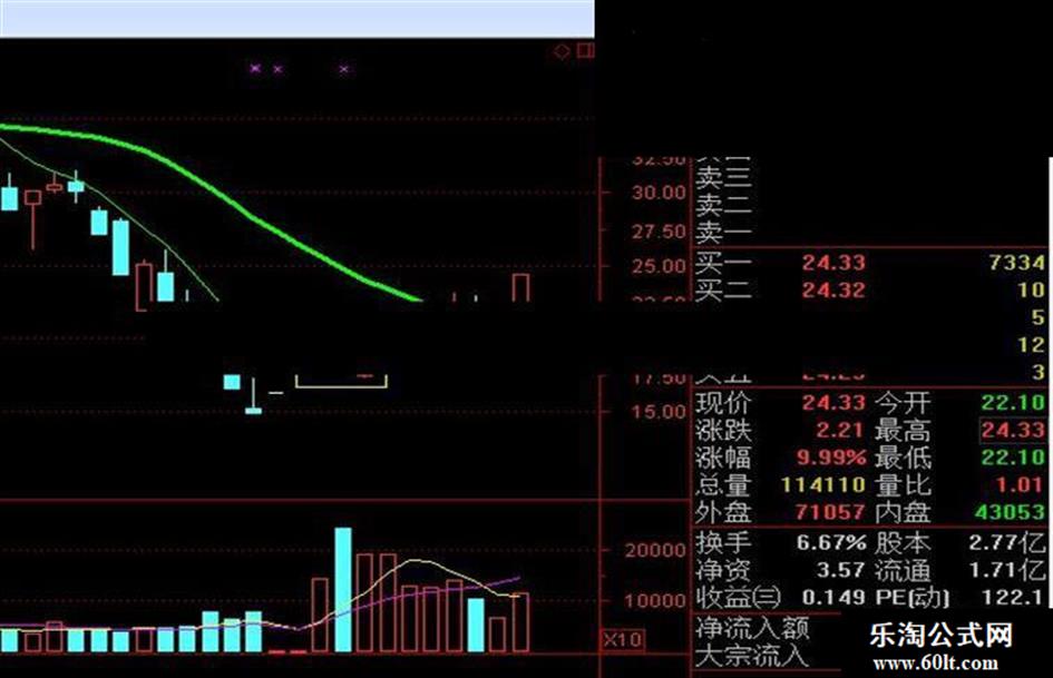 下跌:IF(VAR1=VAR6,VAR6,DRAWNULL),COLORGREEN;