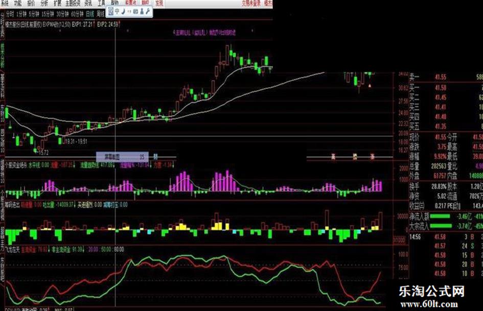 发这个主流资金指标,也有人叫飞龙在天,也是自己在网上搜索来的,具体用法自己也在不断琢磨,也希望高手知道使用此指标的要点回复一下,谢谢!
