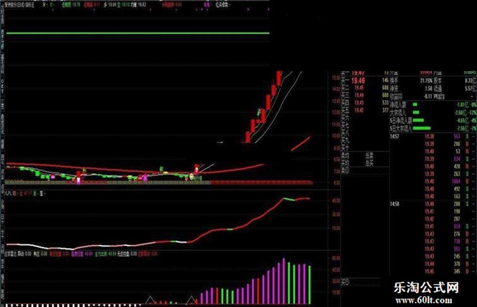 卖线1:=IF(MC1>MAX(MC2,MA4),MC1,IF(MC1<MIN(MC2,MA4),MC2,MA4)),COLORFF00CC,LINETHICK3;