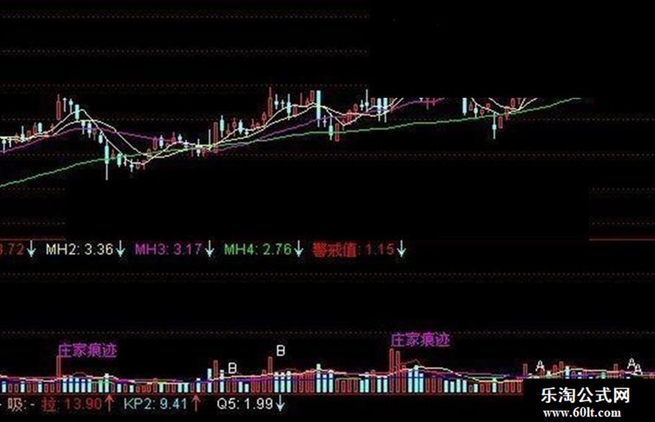 DRAWTEXT(AX1>3&&AX1<5&&AX2A>2&&AX2>2,1.2*HSL,'庄家痕迹'),COLORMAGENTA;