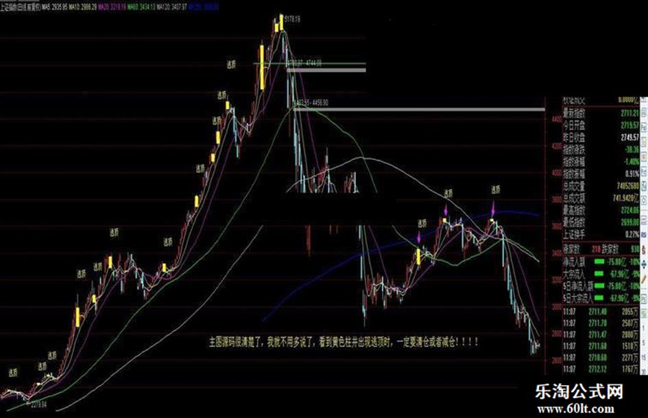 本源码适合 “通达信” 用,其它软件没有测试,把源码加入到任何主图中即可。本逃顶源码不仅适合看上证指数,也可以看个股的逃顶,希望大家下载加入主图后去复盘,在大牛市行情中,可能会频繁出现,配合5日线和10日线,只要5日线不发生往下的拐点就继续持有。
