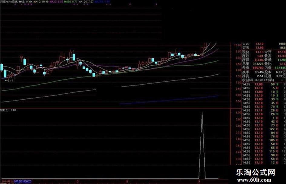BV:=MA(OB,30);BV1:=MA(OB,13);BV2:=MA(OB,5);TT:=CLOSE>REF(CLOSE,1)*1.035;