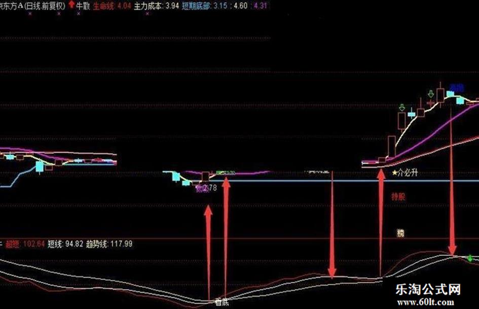DRAWTEXT(趋势线>REF(趋势线,1)AND REF(趋势线,1)<REF(趋势线,2)AND COUNT(CROSS(超短,短线),3)=1 AND 短线<30,短线,'看底');