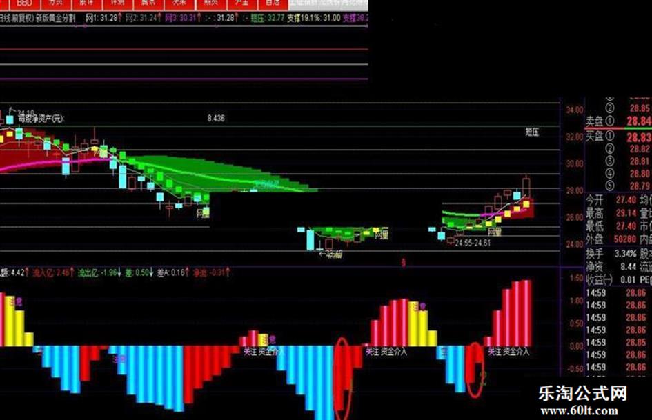 DRAWTEXT(CROSS(净流,0),0,'关注 资金介入'),COLORWHITE;