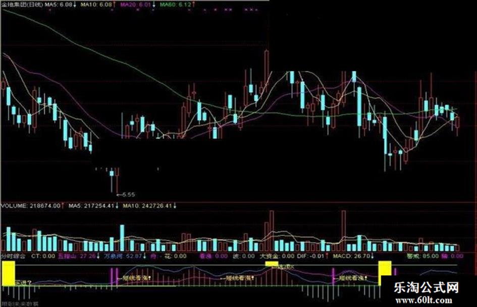 DRAWTEXT(P1,45,'←短线看涨!'),COLORYELLOW,LINETHICK2;