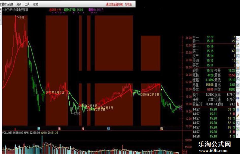 趋势线下降:IF(LS,趋势线,DRAWNULL),LINETHICK2,COLORGREEN;