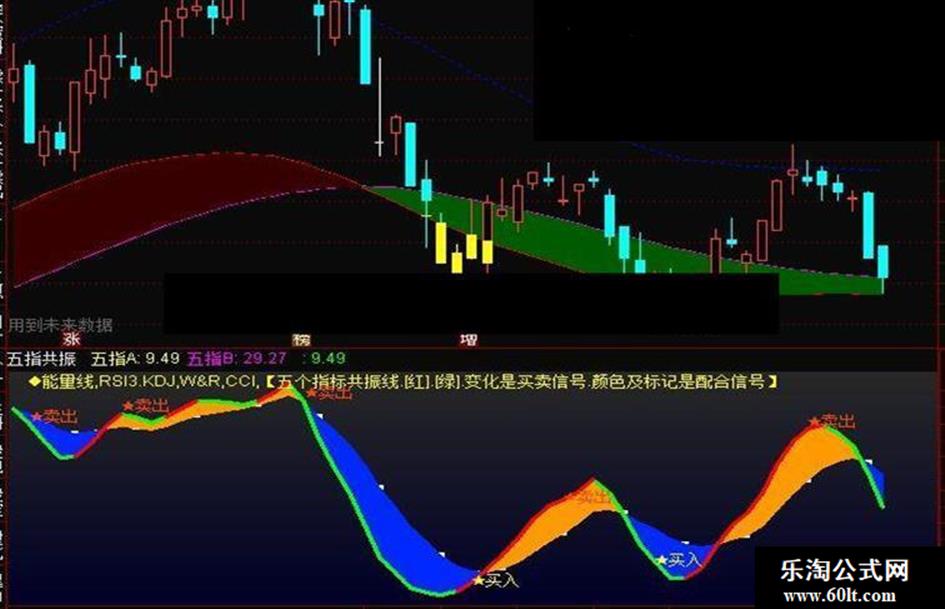 DRAWTEXT_FIX(1,0.02,0,0,'◆能量线,RSI3.KDJ,W&R,CCI,【五个指标共振线.[红].[绿].变化是买卖信号.颜色及标记是配合信号】'),COLOR00FFFF,LINETHICK3;