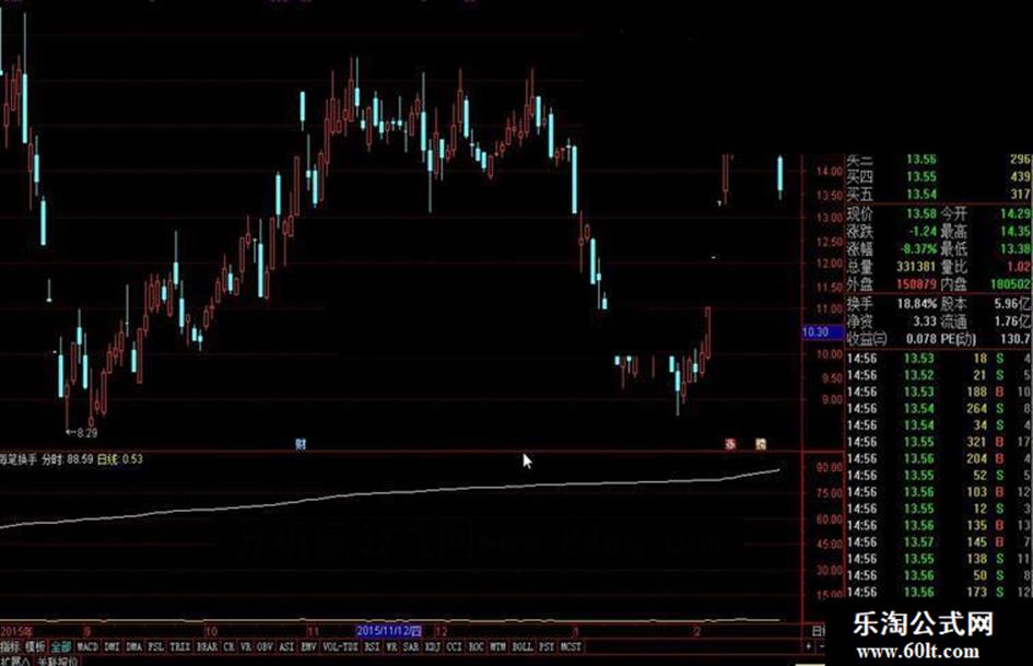 {分时:SUM(V,0)/CAPITAL*100/DYNAINFO(50);}{显示小数点后四位}