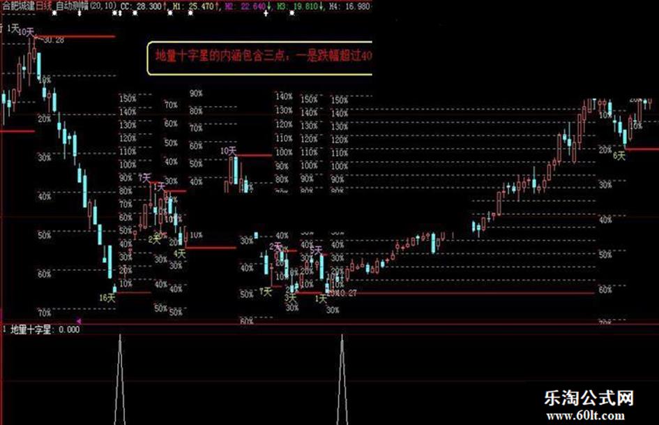 一、原理:根据20日下跌幅度40%以上,且出现地量,收十字星。20天下跌幅度超过40%以上,做空动能将逐步减弱,出现地量,说明惜抛筹码情况出现,出现十字星,说明做空动能开始衰竭。