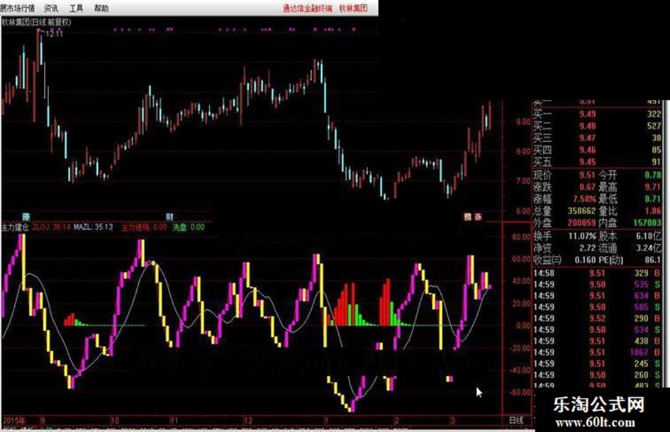 ZLGJ:100*EMA(EMA(NMTM,N1),N1)/EMA(EMA(ABS(NMTM),N1),N1),COLORRED,LINETHICK1;