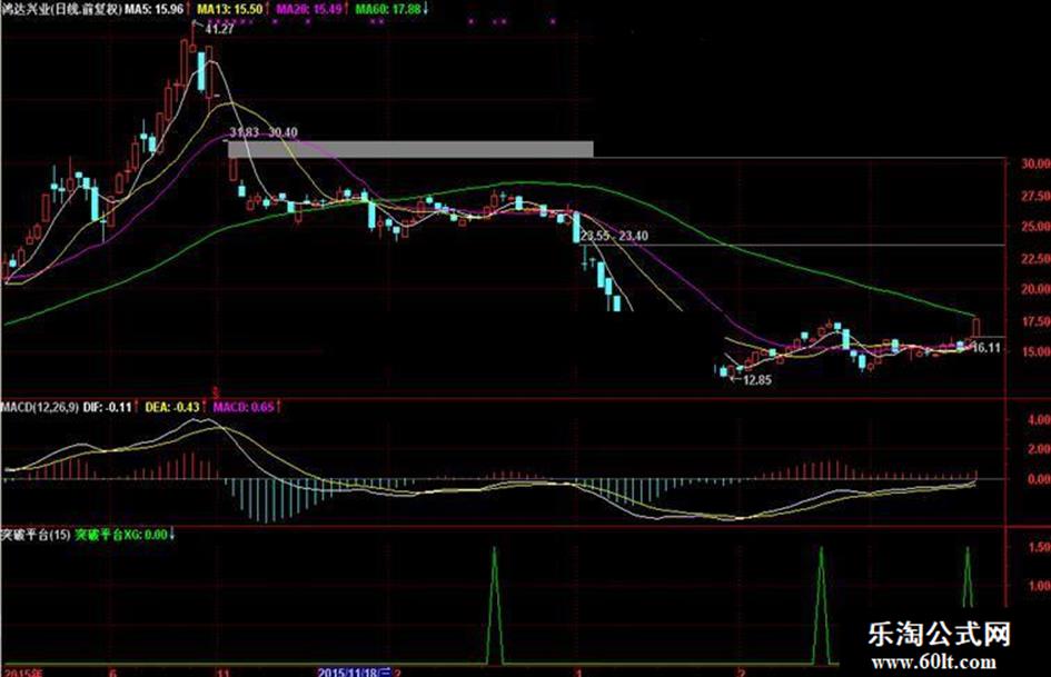 W1:=C=HHV(C,15);{15是天数的高点,可以任意修改,例如想突破30天平台的,就改成30即可}