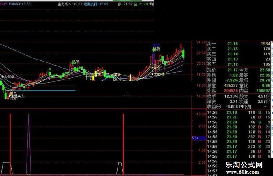 猎杀潜航:IF(CROSS(趋势,底部),10,0),STICK,COLORRED,LINETHICK3;