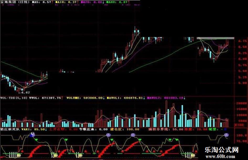 上升在即: IF(CROSS(VAR1,VAR2),50,0),STICK,COLOR0000CC,LINETHICK2;