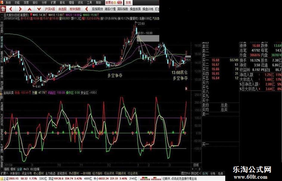 用法:指标含有高抛低吸买卖点提示,在多空争夺密集区会多次出现买卖点,也是最佳机会,下跌行情中,最好持币观望,在安全区可以逢低介入,安全区介入收益非常可观。