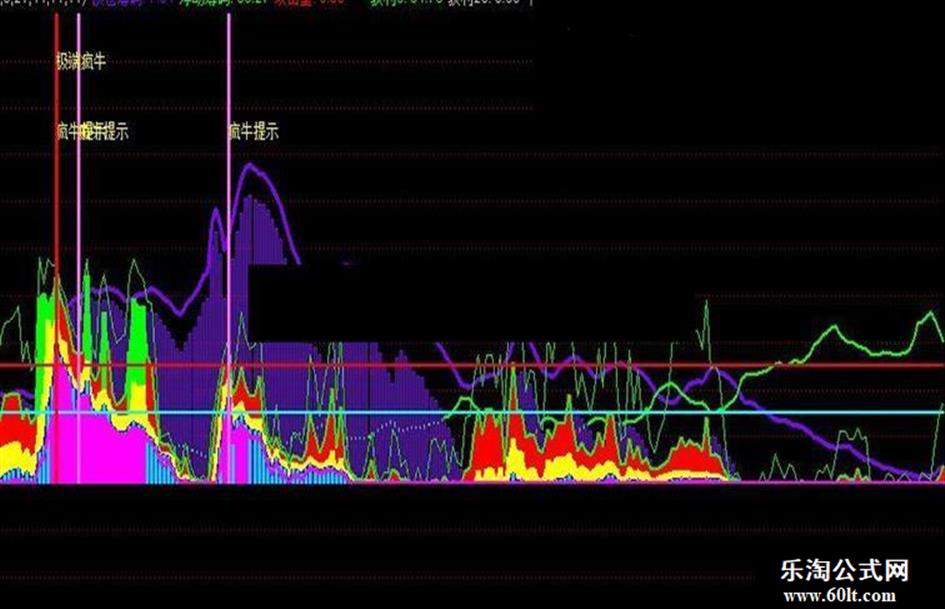 DRAWTEXT(CROSS(超级疯牛股,疯牛极端预警线),180,'极端疯牛'),COLOR00FFFF;