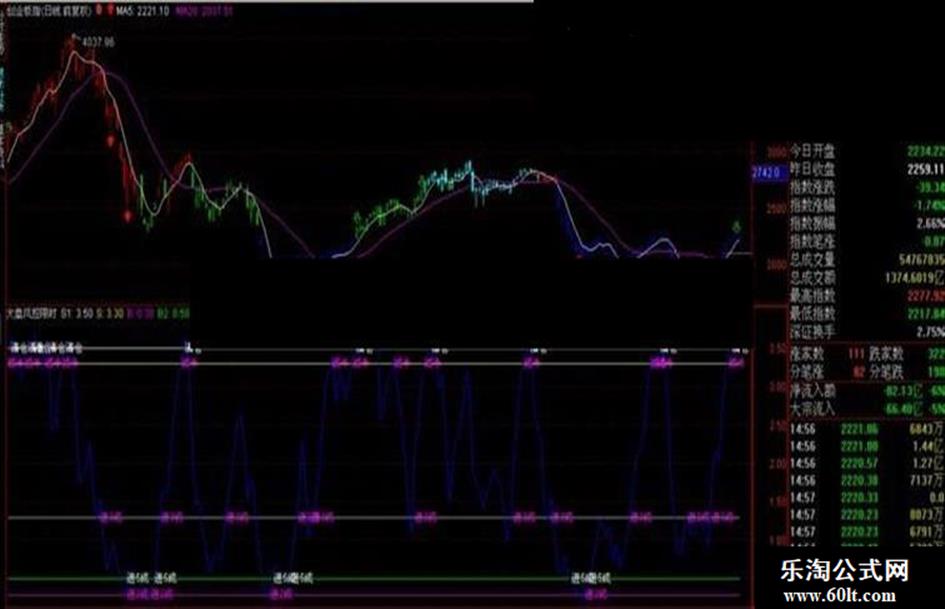 先,说一下这个是通达信副图指标(不是吹牛B的,每次暴跌,指标都是在前一天或者前两天提示清仓,每一次中跌,都是在前一天或者前两天提示减半或者清仓,试问,谁敢来与此指标争锋!!!欢迎来挑战)。