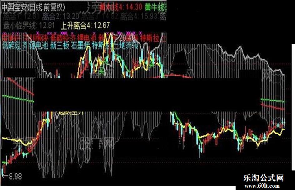 上升离合赋值:(黄牛线+((收盘价-黄牛线)*收盘价-黄牛线)/黄牛线),画红色