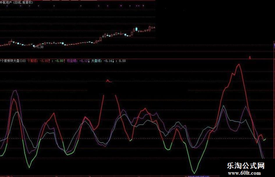 大盘线:=SLOPE(INDEXC,N)/MA(INDEXC,N)*10,COLORCYAN,LINETHICK1;