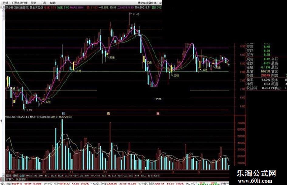 DRAWTEXT(FILTER(买=1,5),LOW-0.05,'↖买进'),COLORYELLOW;