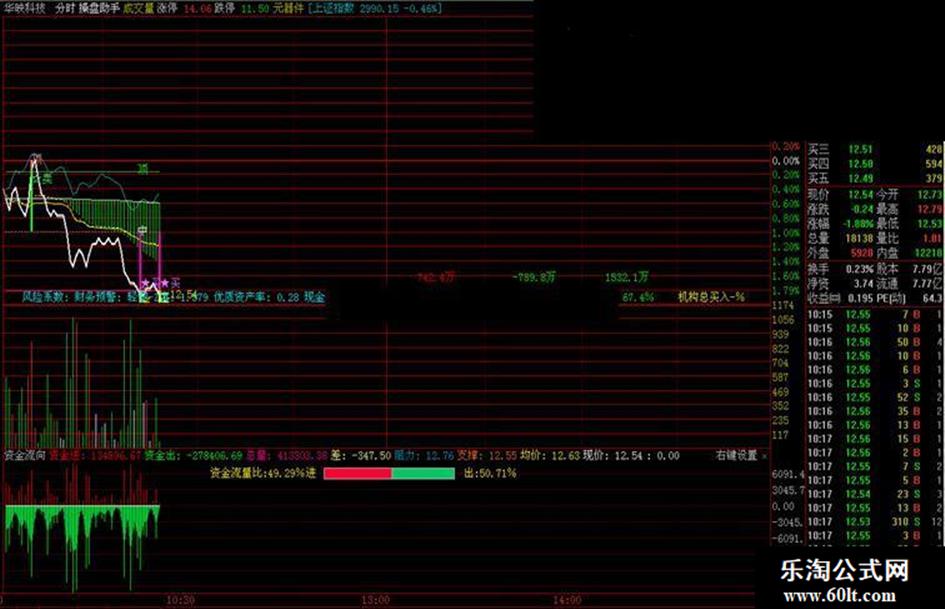 网上有文章说大多数资金进出指标都是不准的,因为普通版证券软件没 L2 分时数据,所以不少指标一般用这种公式表达: 资金流入:SUM(IF(C>REF(C,1),C*V,0),FROMOPEN); 资金流出:-SUM(IF(C<REF(C,1),C*V,0),FROMOPEN); 本人这一段时间苦思冥想,近日特发灵感另辟蹊径,编制源码,看看还可以,发出来先让大家看看图,觉得如何,尤其是高手评论一下。 谢谢大家!