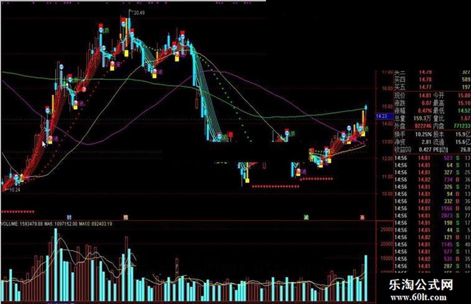 2)量增价升,买入信号:成交量持续增加,股价趋势也转为上升,这是短中线最佳的买入信号。“量增价升”是最常见的多头主动进攻模式,应积极进场买入与庄共舞。