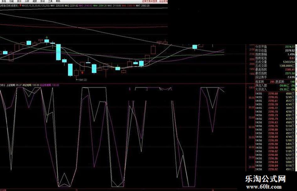 上证长期:=100*(上证涨幅-LLV(上证涨幅,30))/(HHV(上证涨幅,30)-LLV(上证涨幅,30)),COLORRED,LINETHICK2;