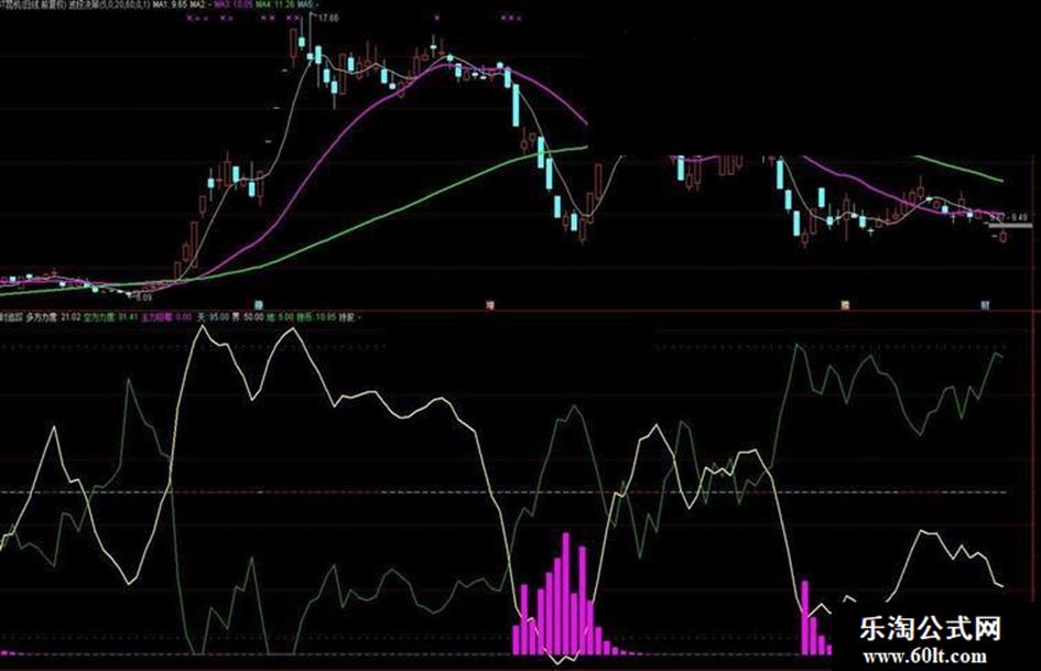 多方力度:(3*SMA((CLOSE-LLV(LOW,27))/(HHV(HIGH,27)-LLV(LOW,27))*100,5,1)-2*SMA(SMA((CLOSE-LLV(LOW,27))/(HHV(HIGH,27)-LLV(LOW,27))*100,5,1),3,1)),COLOR00FFFF,LINETHICK2;