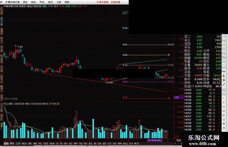 H4:=高-(高-低)*0.618;