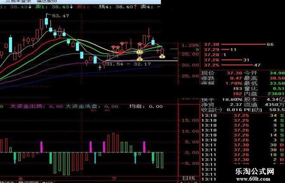 大资金出场:IF(CROSS(AA,BB),5,0),STICK,LINETHICK4,COLORMAGENTA;