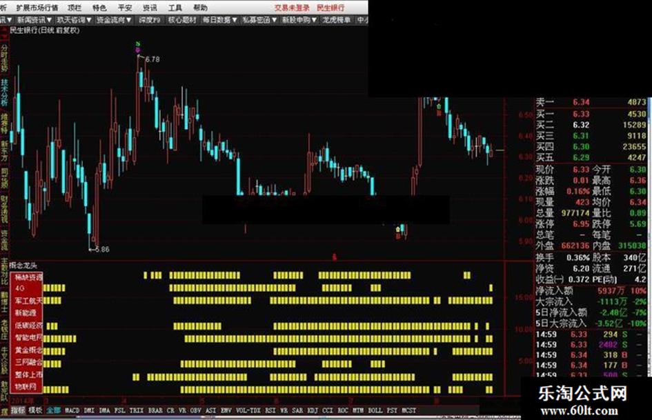 DRAWTEXT_FIX(ISLASTBAR,0.01,0.8,0,'整体上市'),COLORWHITE;