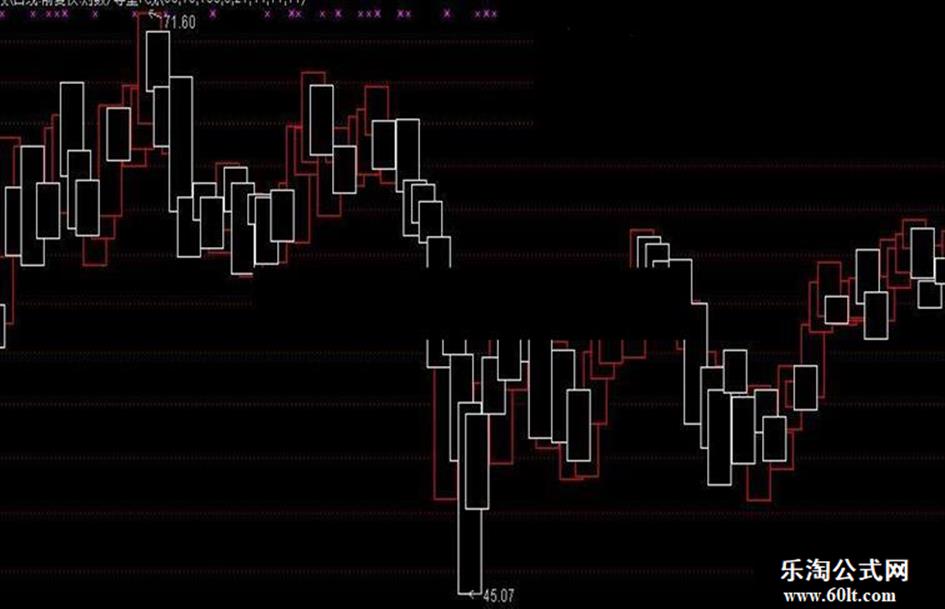 STICKLINE( C=OPEN AND C>REF(C,1),H,L,HSL*21,1),COLORRED;