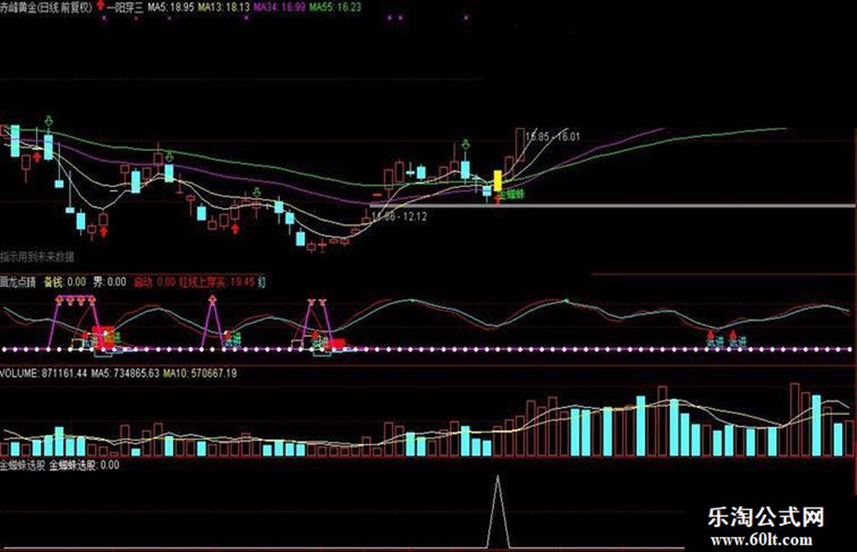 DRAWTEXT(一阳穿三线,L-0.1, '金蜘蛛'),COLORGREEN;
