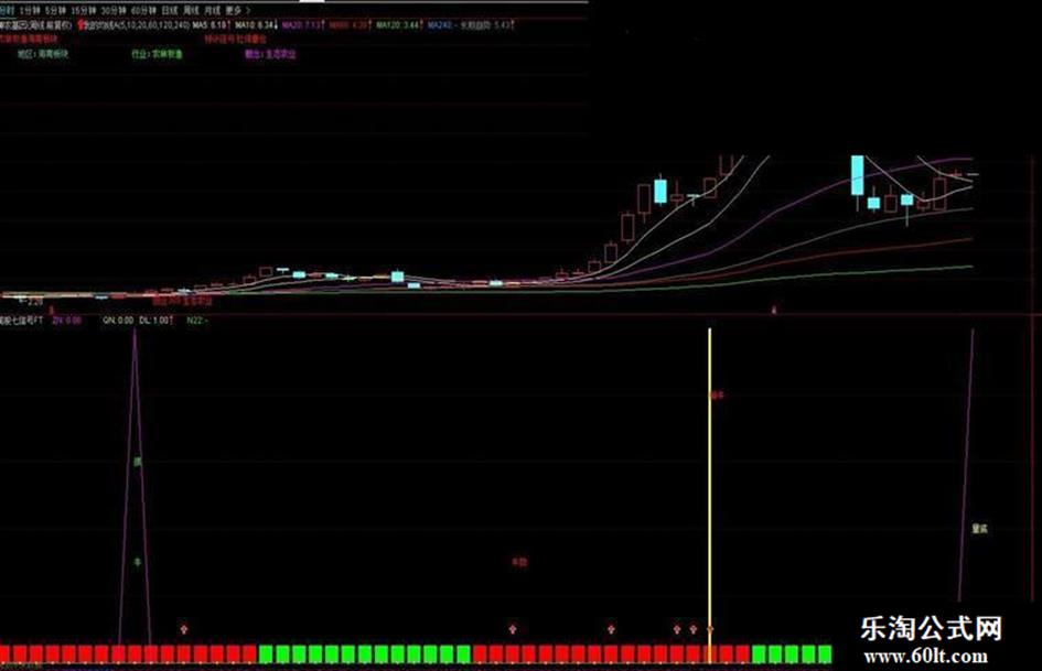 淘股七信号副图+选股: 是整理在一个副图上的方便观察和选股的综合指标。 七信号包括(抓牛 大资金 牛势 牛底 量底 牛庄 黄柱箭) 本指标可以单独选股,也可一次综合选股。 是本人在理想网下载,花200元在淘宝上整理加工的指标。 量底 牛底 牛势有未来函数,其他四个没有未来函数。 其实股市本身就是一个充满未来函数的投机市场,有未来函数的指标就看你怎么去甄别和利用,主力利用我们对指标的依赖,没未来函数的指标照样被套。 来在于理想,奉献于理想。