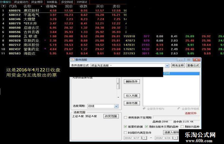 《资金为王选股》公式,公式有密码(是原来就有),无未来,无时间限制